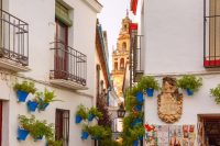 Calleja de las Flores je rozkošná, úzká ulice zdobená stovkami květin. Stala se symbolem stejně krásného města Cordoba v srdci Andalusie ve Španělsku
