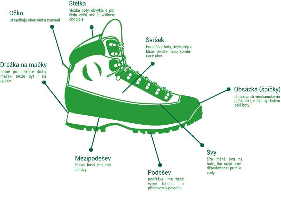 Vhodná výška obuvi závisí hlavně na teplotě a náročnosti terénu. Jestliže se vydáte na výlet po dobře udržovaných cestách, budou vám stačit nižší boty. V létě využijete trekové sandály, během jara a teplejšího podzimu se vám budou hodit nízké trekové boty. Do náročnějších terénů a do vyšších nadmořských výšek se vybavte vyššími botami, které udrží váš kotník zpevněný a ochrání vaše nohy před chladem, větrem a vlhkostí.