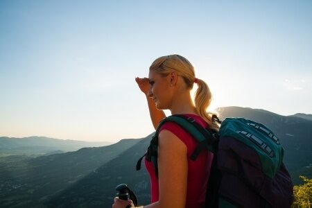 Nakonec si správně upravte popruhy, aby vám pohodlně seděl batoh na zádech. Bederní pás je lepší zapínat výše na bocích nebo až v pase, odlehčíte tak ramenům. Pásy by neměly být volné, ale ani by vás neměly dřít. Teď už zbývá jen vyrazit.