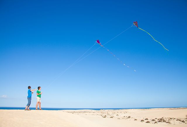 Na pláži Fuerteventure můžete klidně pouštět draky i v plavkách. -