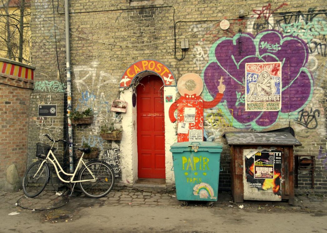 Všechno to harampádí, nelad a chaos má však svůj spletitý příběh. Nejsme totiž na smetišti. Stojíme uprostřed Chritianie, též známé jako svobodné město (dánsky Fristaden Christiania).