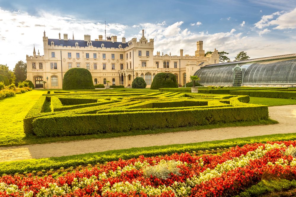 Zámek Lednice najdeme v lázeňském městě Lednice kousek od Mikulova. Lednické panství náleželo již od 13. století výhradně šlechtickému rodu Lichtenštejnů, který z něj postupně vybudoval honosné sídlo s rozsáhlým přírodním parkem, oranžerií, jízdárnou, skleníkem a mnoha drobnými parkovými stavbami. Po roce 1945 byl zámek Lichtenštejnům na základě Benešových dekretů zabaven. Současná podoba zámku pochází z 19. století, kdy probíhala velká rekonstrukce.