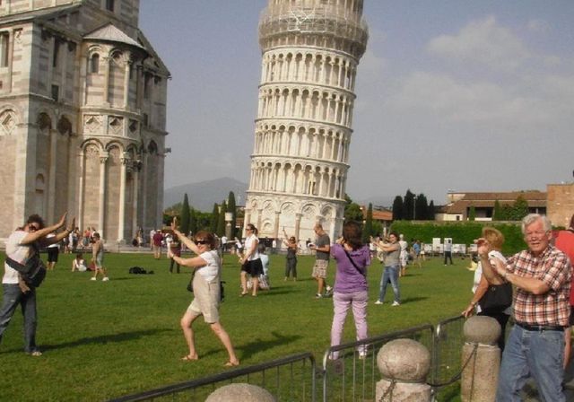 • Ještě, že turisté tu šikmou věž tak pěkně drží.