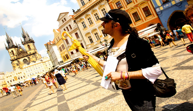 Průvodce Karim vypráví příběh ze Staroměstkého náměstí. Zdroj: Tomáš Česálek
